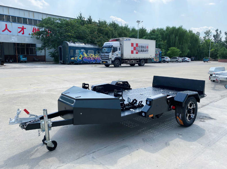 Features: Hydraulic lift system for easy loading and unloading, durable steel frame, suitable for transport with RVs or trucks.
